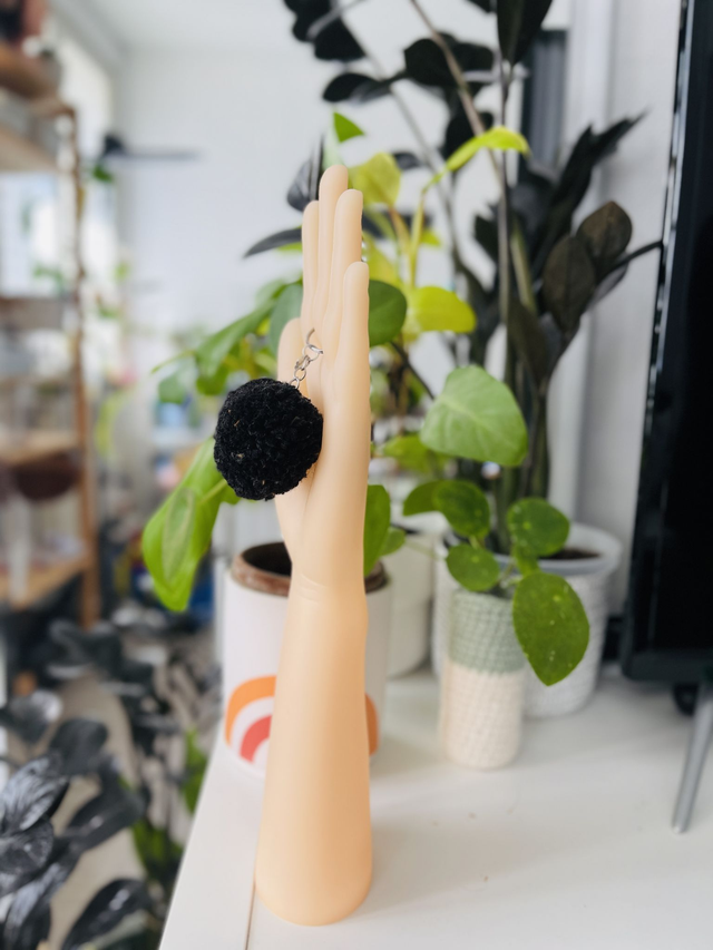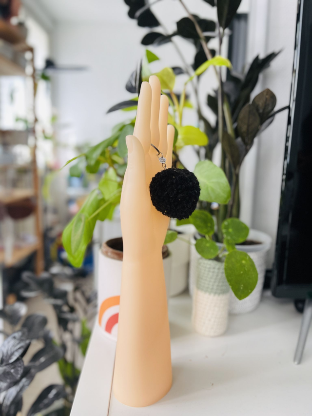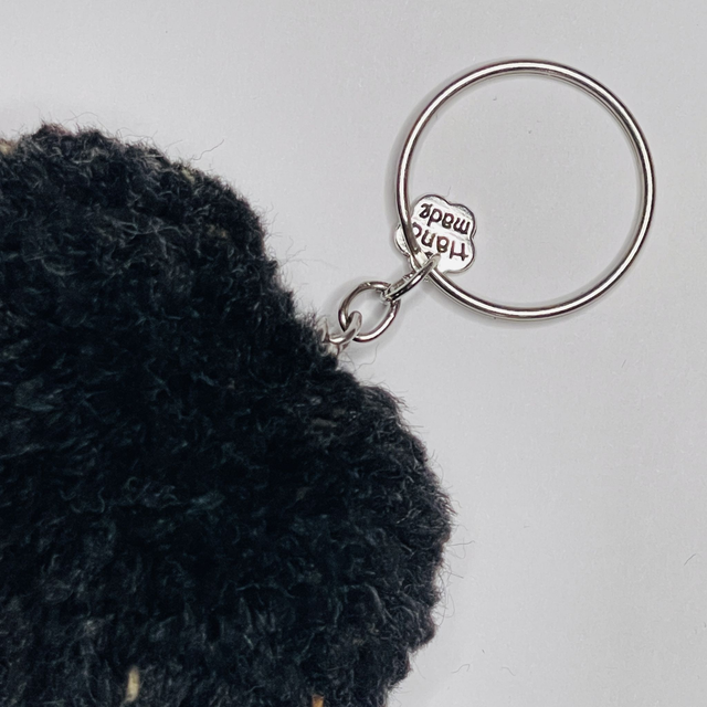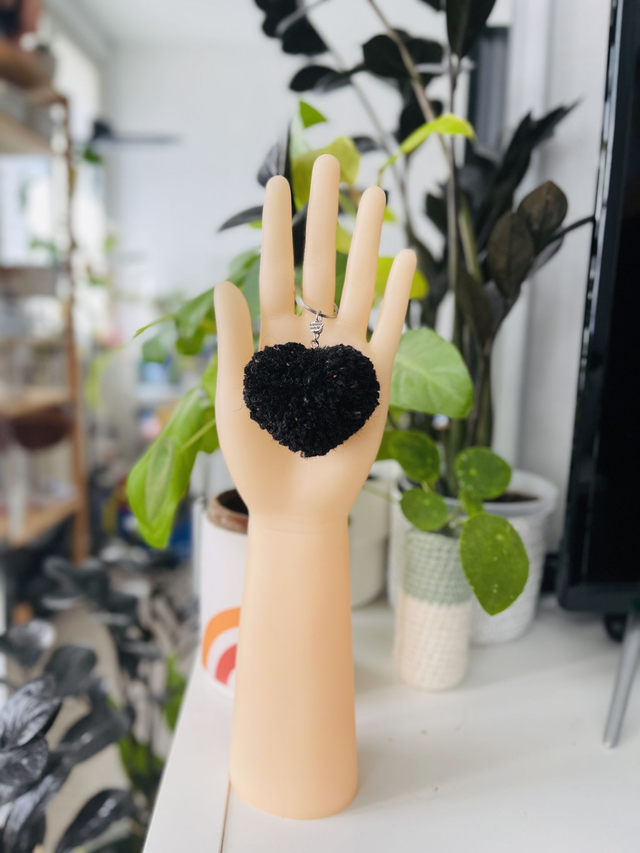 Sobriété minérale et charme brut se rencontrent dans le porte-clé pompon cœur "Dusty Black" 🖤🪨. Ce cœur unique, fabriqué à la main en France, dévoile une texture effet tweed noir, subtilement poussiéreuse, comme une pierre volcanique adoucie par le temps.