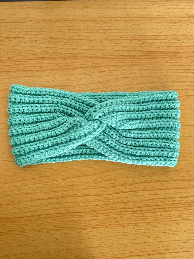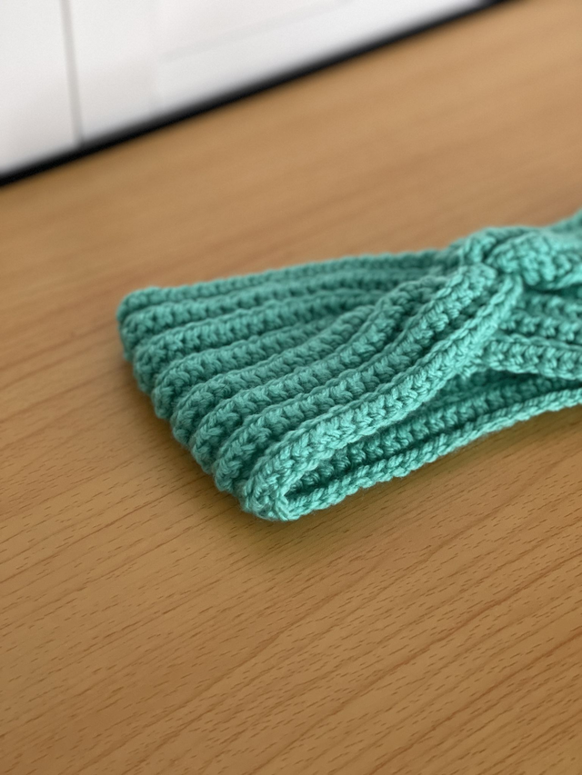 • Bandeau torsadé que j'ai fabriqué à la main au crochet
